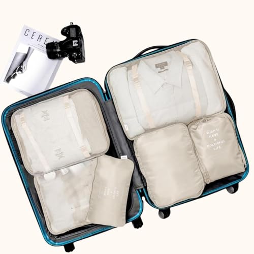 Circle M Travel Packing Cubes, 6-Piece Lightweight Design for Luggage Organization, Beige