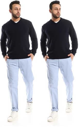 Andora mens V-Neck Knitted Solid Pullover Sweater