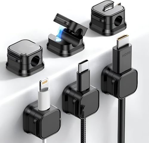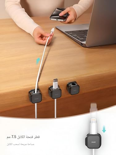 - تتضمن المجموعة ستة حوامل كابلات مغناطيسية، مما يسمح لك بتنظيم كابلات متعددة بفعالية. تتيح لك الوفرة ترتيب الكابلات المختلفة بشكل أنيق حول مساحة العمل الخاصة بك بسهولة. يمكنك إنشاء بيئة مرتبة من خلال التأكد من إخفاء الكابلات بعيدًا عن الأنظار مع إمكانية الوصول إليها بسهولة عند الحاجة، مما يدعم الجمال والوظائف في منزلك أو مكتبك.