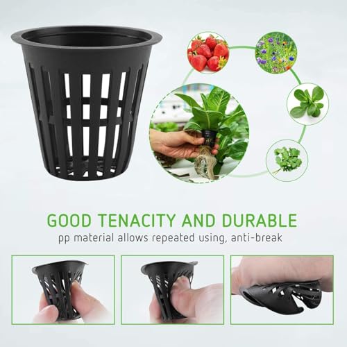 - 【New Plant Cultivation Techniques】The hydroponic basket is suitable for soilless plant, and it can save your water, lightweight and breathable. It is promote a more efficient plant growth through aeration; Using Net Pots allows the roots to grow through the mesh for better breathing and growth.