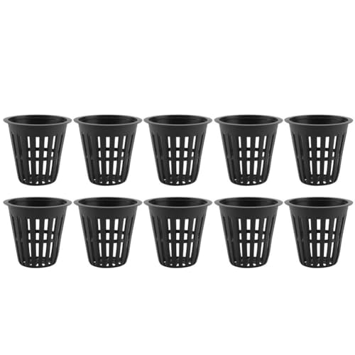 Hydroponic Basket, 10pcs/Set Bucket Basket Lid Garden Plastic Net Cups Pots Hydroponic Basket Cup Plant Net Pot for Hydroponics Garden Containers(Black)
