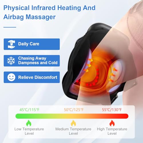 - 【ضبط التسخين】 يحتوي جهاز تدليك الركبة هذا على ثلاثة أوضاع تسخين، من إعداد منخفض يبلغ 45 درجة مئوية/100 درجة فهرنهايت، وإعداد متوسط 50 درجة مئوية/120 درجة فهرنهايت وإعداد عالٍ يصل إلى 55 درجة مئوية/120 درجة فهرنهايت. يتم توزيع الحرارة بالتساوي لتغطية منطقة المفصل بأكملها.