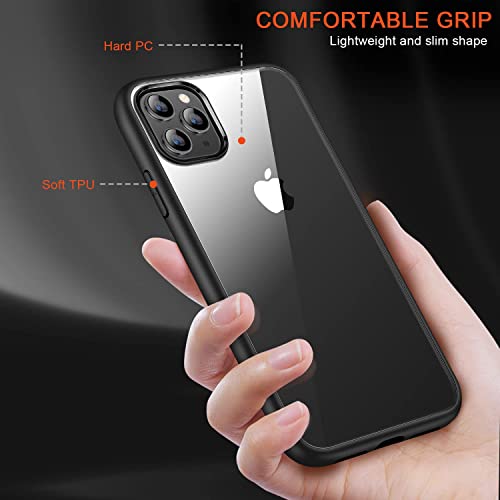 جراب حماية شفاف رفيع متوافق مع موبايل ايفون 11 برو 5.8 بوصة تصميم صلب مضاد للصدمات من البولي كربونات والسيليكون الناعم للاصفرار دلع موبايلك لون اسود يوريثين الحراري