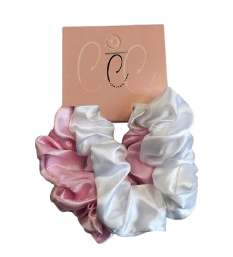 طقم ربطات شعر ساتان من قطعتين - بيبي بينك وابيض