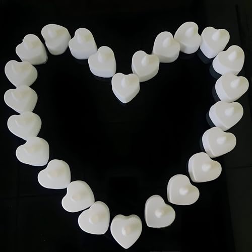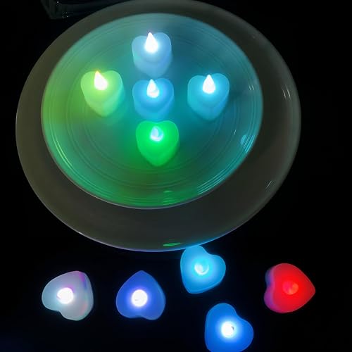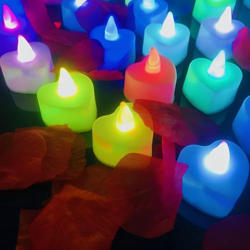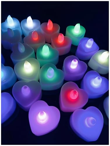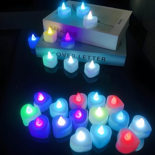 شمع LED على شكل قلب - 24 شمعة متوهجة لحفلات الزفاف والديكور المنزلي وحفلات أعياد الميلاد - آمنة وتعمل بالبطارية وملونة لإضفاء جو سحري