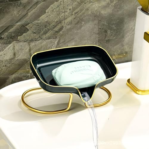 - This acrylic soap dish features a sleek, modern design with a sturdy gold metal stand, adding an elegant touch to any bathroom decor. Its contemporary style is imported, ensuring a fashionable look that complements various interior themes.