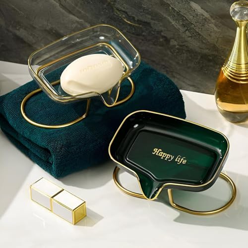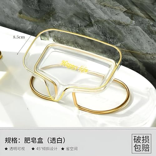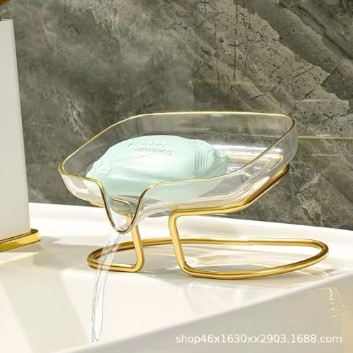 - The elegant gold finish and transparent acrylic material give this soap dish a chic, luxurious appeal that enhances the aesthetic of any bathroom setting. Its imported quality ensures durability and design excellence.