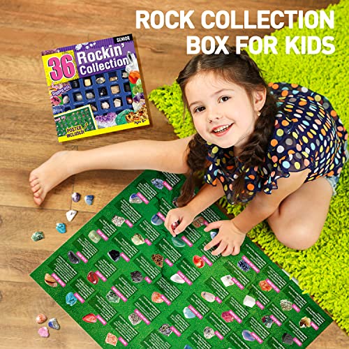 - Gemstone Kit for Kids: The kit includes 36 pieces different rock specimens with identification sheet. It is a nice collection for starting “rock hound".