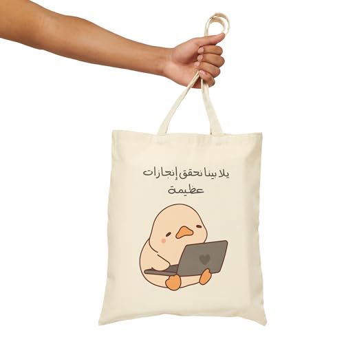 ToteBag - Beige Canvas Zipper Bag Cute Lazy Lazy Yalla Pena Make Great Achievements Funny Canvas Bag for Lessons and School Funny Cute Lazy Duck Tote Bag For Study With Zipper