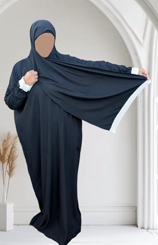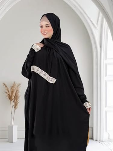إسدال صلاة من الفسكوز مع طرحة متصلة طويل وخامة قطن جيدة . اسدال فضفاض للاستقبال والصلاة والإستخدامات المتعددة