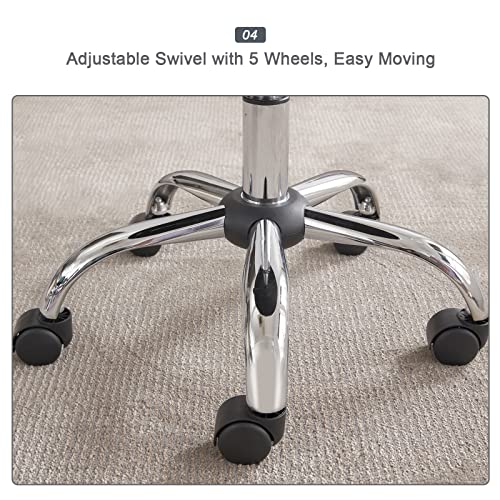 - 360 Degrees Swivel rolling stool with wheels, The gas-lift bar used for adjustment has passed the BIFMA safety certification issued by the SGS organization. It can also be used as a vanity chair vanity stool for makeup room.