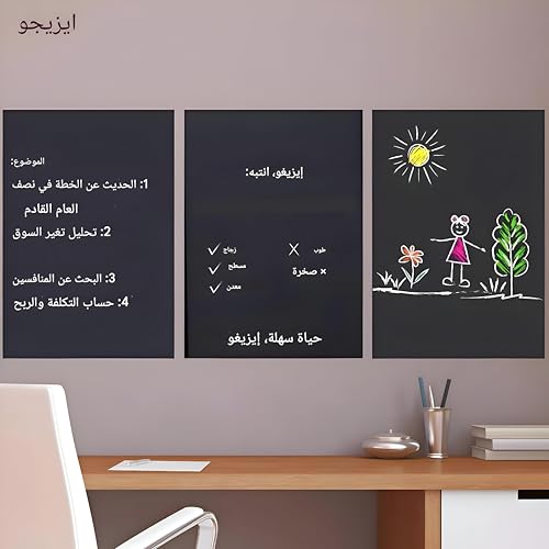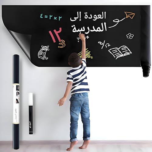 لفة ملصق السبورة - حول أي سطح مستو إلى سبورة (الحجم: 60 سم × 100 سم) - يتضمن 4 اقلام طباشير - رائعة لتنظيم المهام في المطابخ أو الفصول الدراسية أو غرف الأطفال (قطعه)