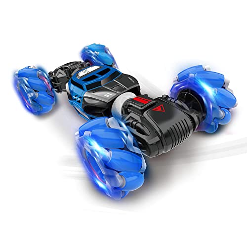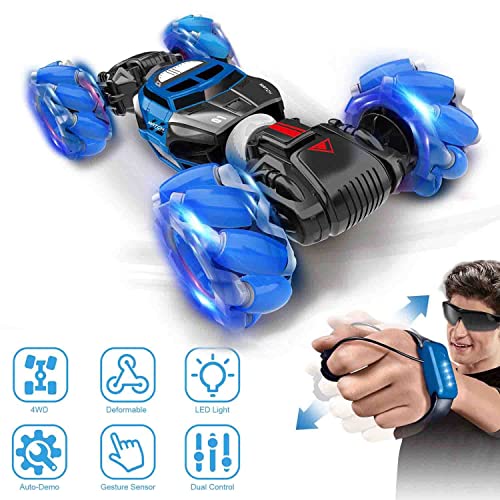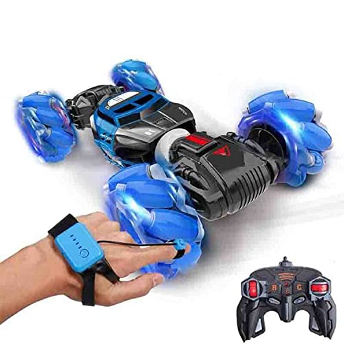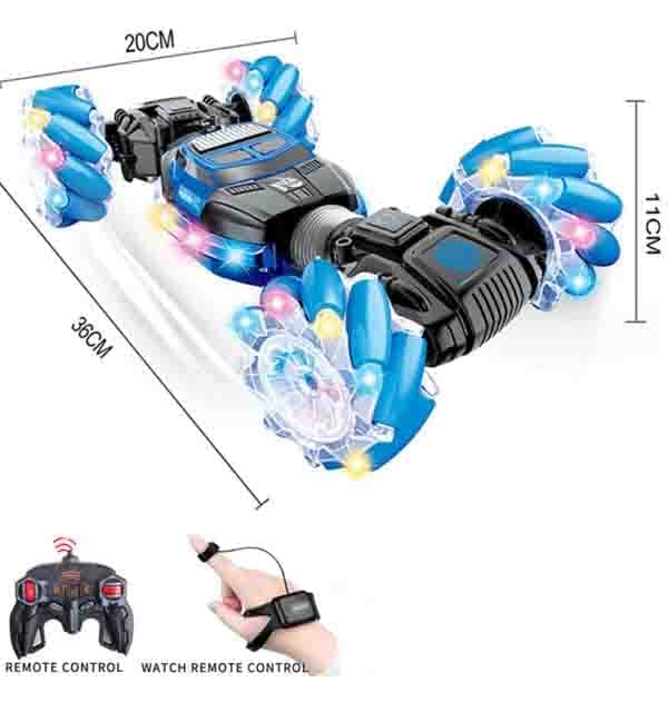 لعبة سيارة دفع رباعي ذكية مزدوجة الجانب وقابلة للطي مع ضوء LED وموسيقى طرق وعرة لجميع التضاريس ساعة ريموت كنترول بمستشعر ايماءات أزرق