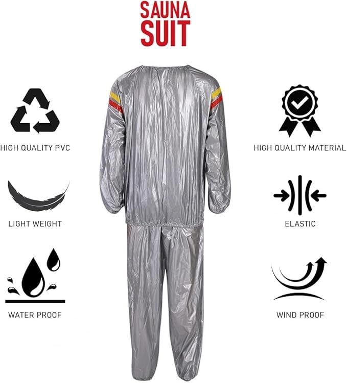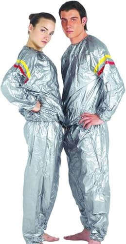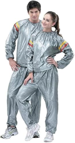 بدلة ساونا شديدة التحمل للتمارين الرياضية واللياقة البدنية والجيم، بدلة ساونا مقاومة للماء بمقاس كبير للنساء والرجال (فضي)
