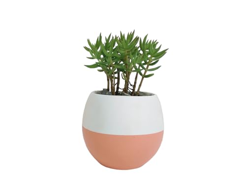 Green grass succulents Plant with Pink & White pot - pot size 8 cm for Office decoration & Kitchen accessories & Home decor - indoor plants natural - natural cactus plants & succulents plants