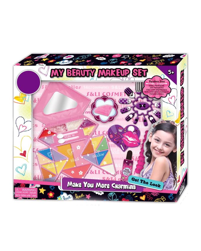 - Features: Safe and kid-friendly All products are paraben free and made with child safe materials. VERSATILE: the set contains everything you need for a wonderful makeup experience, including eyeshadow, lipstick, blush, and more. CUTE DESIGN: The attractive packaging design and bright colors make this set the perfect gift for any little girl. BOOST SELF CONFIDENT: this set encourages children to express themselves and show their creativity