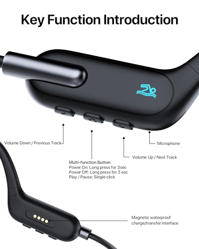 - Swimming MP3 player 32GB memory: portable music enjoyment – these bone conduction headphones have built-in 32GB memory that can hold up to 4000 songs. They support MP3, FLAC, WMA, AAC, WAV, APE and M4A formats.