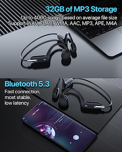 HIFI WALKER Bone Conduction Headphones, IPX8 Waterproof MP3 Swimming Headphones Underwater Music Player Built-in 32G Memory, Open-Ear Wireless Bluetooth 5.3 Earbuds for Running, Cycling, Swimming