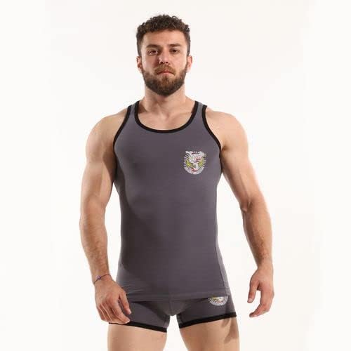 مجموعة من بوكسر وفانلة بقصة مريحة من قطونيل، بتصميم طبعة رائعة لون رمادي داكن، مقاس 3 للاولاد