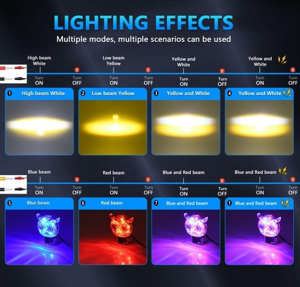- Owl Design White 2 Lens LED Lantern Light Light Bulb , High Bright White Yellow Static Light 7 Color Flash, 3 Tip Cord, Suitable for Cars, Motors, Scooters, Trucks, Off-Road Cars, Mountain Cars