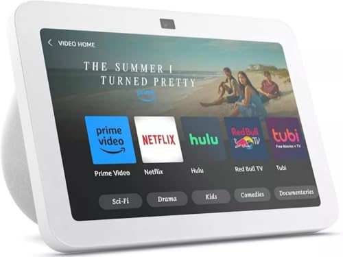 شاشة عرض ذكية بشاشة HD مقاس 8 انش وتطبيقات بث مدمجة وتحكم صوتي بلون ابيض
