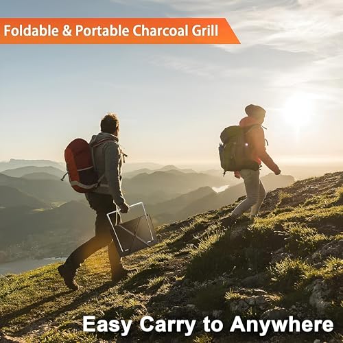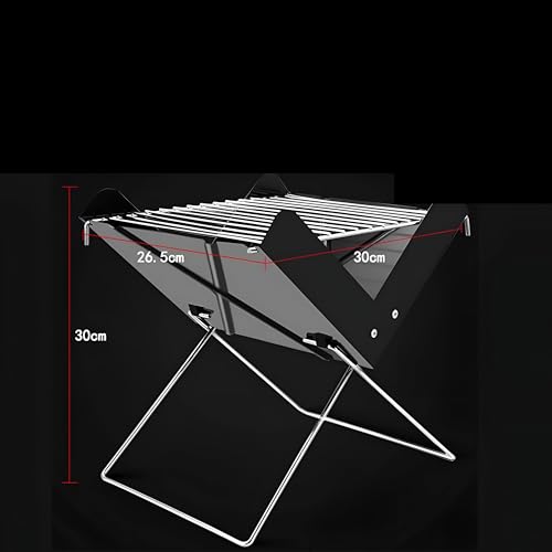 - This portable charcoal grill features a foldable X-frame design that measures 30cm x 26.5cm x 30cm when assembled, offering a compact and space-efficient solution, perfect for outdoor adventures such as camping, hiking, or beach outings, allowing easy packing and transportation in any backpack due to its slim profile of just 6cm when collapsed.