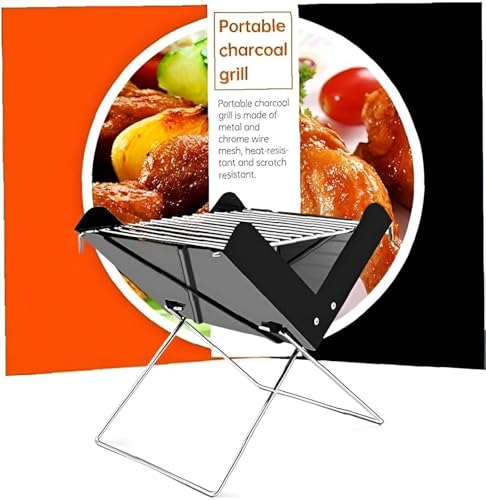 Portable Charcoal Grill - Lightweight and Foldable Camping BBQ with Heat-Resistant Metal Frame, Chrome Wire Mesh Cooking Surface, Perfect for Outdoor Picnics and Tailgating, Compact 30x27x6cm Design