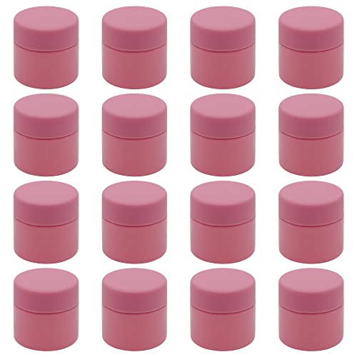 Artistic 20pcs 30ml Glitter Pink Plastic Jar - Pink Lid Healthy Plastic Empty Refill Jar Storage Containers - Round Cans