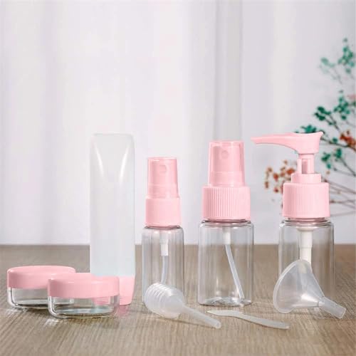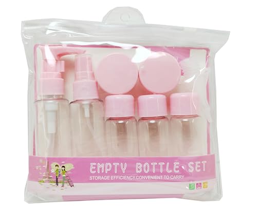 - مجموعة زجاجات فارغة لوازم الاستحمام للسفر ومستحضرات التجميل مع حقيبة أدوات تجميل شفافة ومضخة ومضخة وماصة وحاسائلة، لون بيتك من ستور