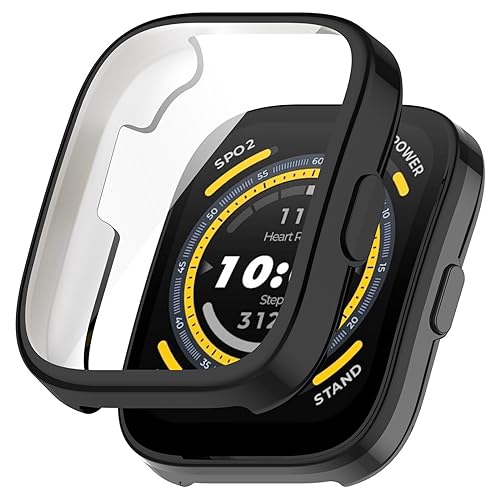 fashion mania TPU Case With Screen Protector Film for Amazfit Bip 5, All-Inclusive Anti-Drop Electroplating Cover (black)