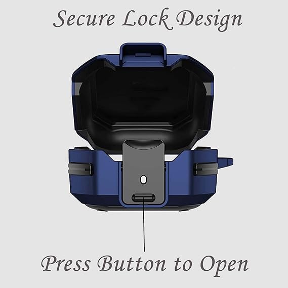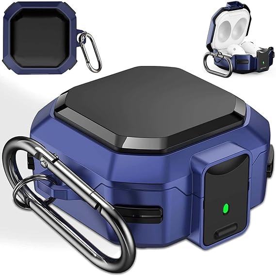 حافظة حماية ارمور من فكرا مع قفل امن لسامسونج جالاكسي بادز برو 2 / بودز لايف صلبة لكامل الجسم للرجال والنساء سلسلة مفاتيح ازرق ألياف كربونيه
