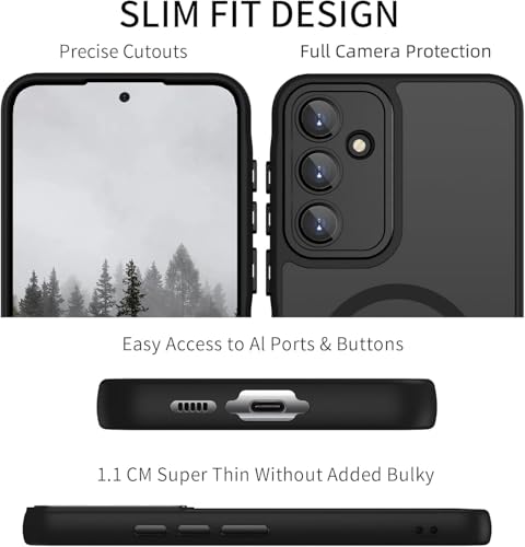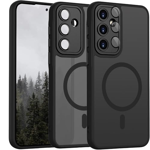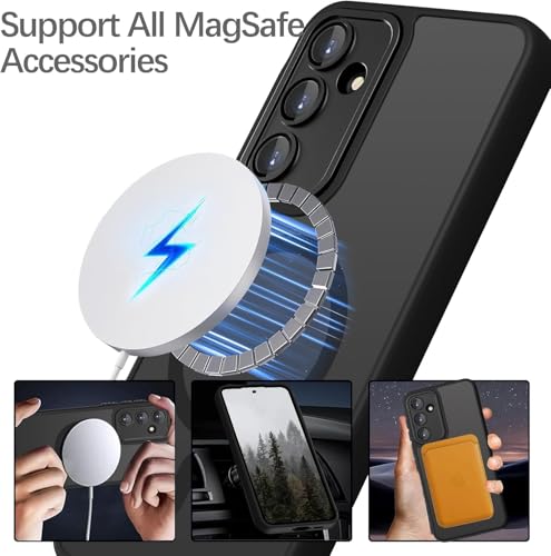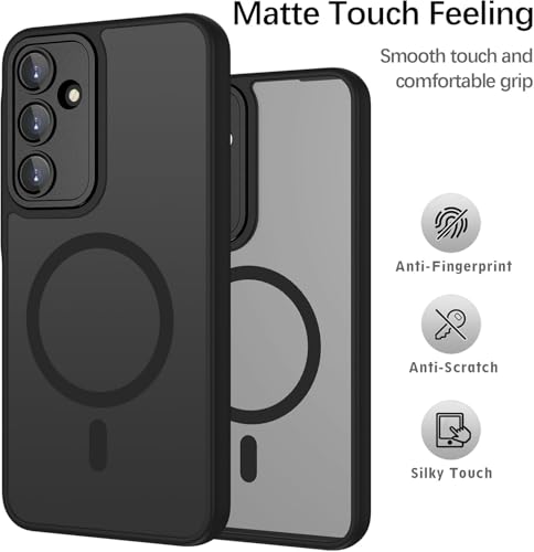 جراب مغناطيسي لموبايل سامسونج جلاكسي A35 شبكة الجيل الخامس 5G من جرابست، حماية كاملة للكاميرا مع عدسة، متوافق مع الحامل المغناطيسي، جراب شفاف غير لامع ومضاد للصدمات (أسود)
