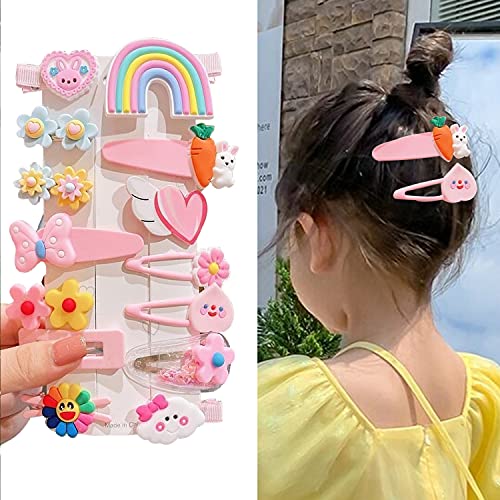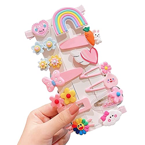 بنس شعر لطيفة للبنات، دبابيس شعر باشكال كرتونية على شكل فاكهة وحلوى وقوس قزح، مشابك شعر عصرية لتزيين الشعر للبنات الصغيرات (رينبو بينك)