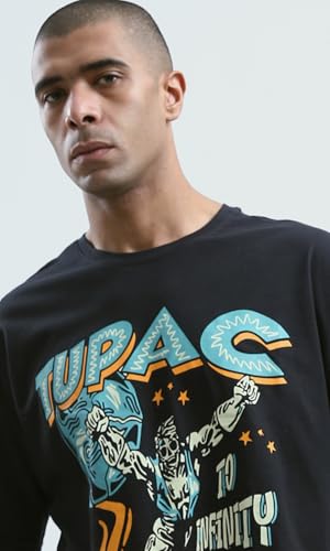 'Tupac'' Printed Round Neck Black Casual Summer Tee