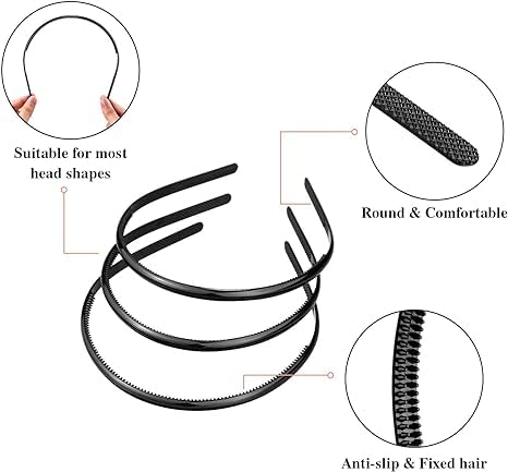 - تصميم أنيق: عصابات الرأس البلاستيكية النحيفة الخاصة بنا بتصميم بسيط ومتعدد الاستخدامات وجميل وسخي، اللون الأسود الكلاسيكي مريح للغاية ليتناسب مع فستانك، ومناسب لكل من الرجال والنساء