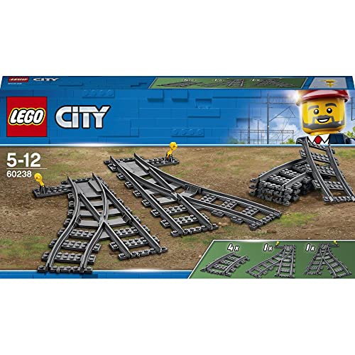 LEGO 60238 City Trains Switch Tracks 6 Pieces, Toy Train Track Extension Pack, Accessory Set