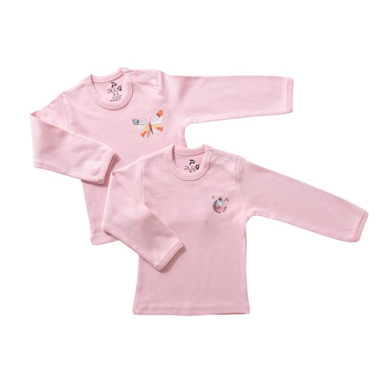 PLU2 Cotton Long Sleeves Undershirt With Special Design For Baby Girl Set, 2 Pieces - Pink
