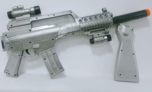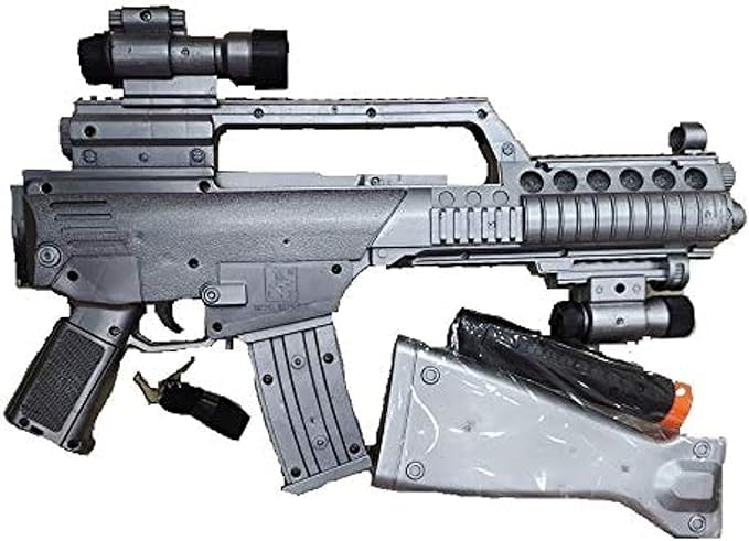عرض قطعه واحده من بندقية رشاش ضوء وصوت بمنظار لون فضى وكات وخزنه اضافيه بلاستيك خمات عاليه جوده لعبه مسليه للاطفال