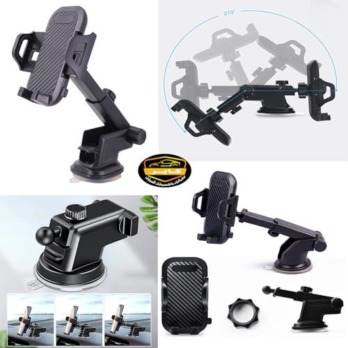 Car Phone Holder, Windshield Dashboard Base Suction Cup Navigation 360 Degree Rotation Car Phone Holder Anti Vibration (Black Carbon Code:2937) - KaberTrade