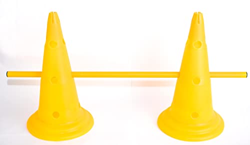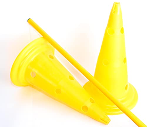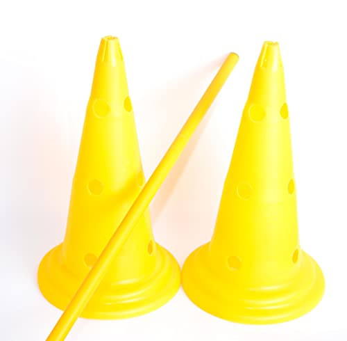 - Set of two cones, comes with 1m yellow pole Designed with 12 holes where you can put in poles and create an exercise course.