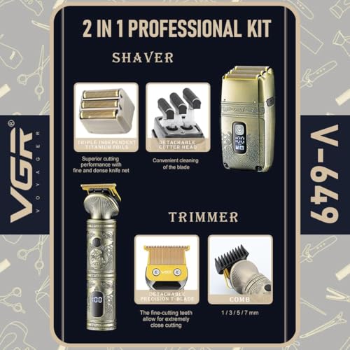 V-649 Titanium Foil Shaver Kit Detachable Blade 4 Combs Cleaning Brush Lubricating Oil Charging Cable