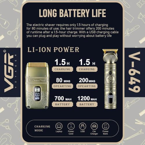 - 1.5 hour charging time, 80 to 200 minutes running time for hair trimmer