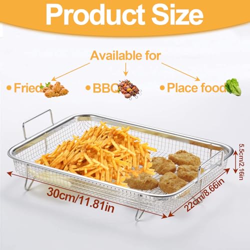 - Box contents: you will receive 2 grill baskets with a total size of 30 x 22 x 5.5 cm. This stainless steel strainer is an indispensable kitchen helper