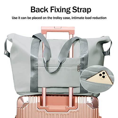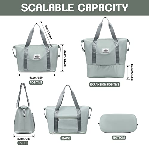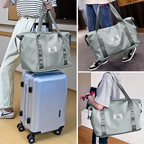شنطة سفر قابلة للطي وبسعة كبيرة قابلة للتوسيع، اكياس قابلة للفصل جافة ورطبة للنساء، مناسبة للسفر وخفيفة الوزن ومقاومة للماء, رمادي، من اييل، قماش