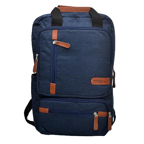 Energy Fabric Two Way Zipper Laptop Backpack With Four Front Zipper Pocket And Bottle Pocket For Laptop Protection - Navy Camel