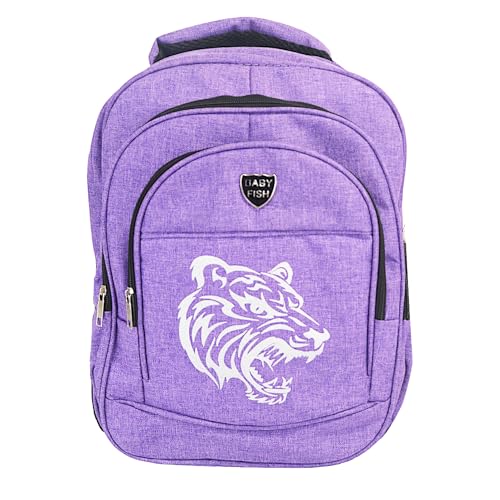 Baby Fish Polyester Backpack Printed Lion For Boys-Dark Purple&Black