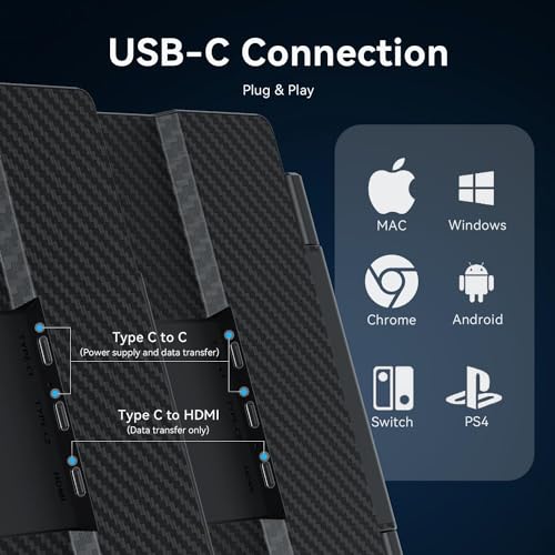 - 【Widely Compatible】Portable external monitor work for 13"-17.3" laptops, compatible with Windows, Chrome, Mac & Switch. It requires 1 USB-C port or 1 HDMI port on your laptop. If you are not sure whether your laptop is compatible or not, you can contact us to provide you with a solution, and we will respond within 12 hours