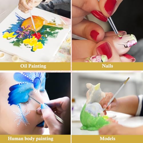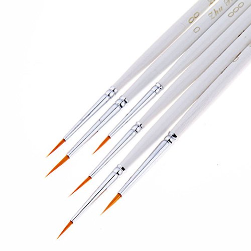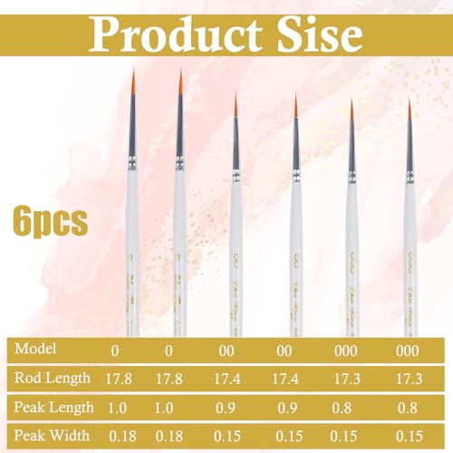 مجموعة فرش طلاء التفاصيل - 6 قطع من فرش فنية مصغرة للتفاصيل الدقيقة والرسم الفني - الاكريليك والالوان المائية والزيت - المجسمات الصغيرة وموديل العرض ومجموعات الطائرات والاظافر