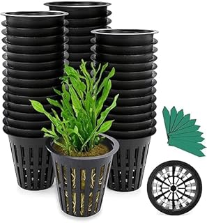 Net Cup Pots, 50 Pcs 2 Inch Garden Slotted Mesh Net Cups, Heavy Duty Cups with 50Pcs Plant Labels, Hydroponic Planting Grow Basket for Indoor Outdoor