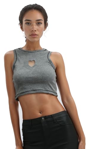 توب كات حريمي مضلع عصري بلون رمادي غامق مرقش مع تصميم فتحة بشكل قلب من ريفين